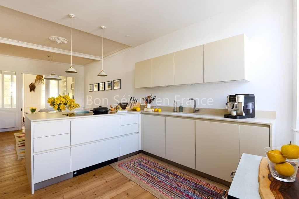 - Open-plan kitchen with dining area