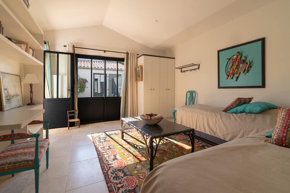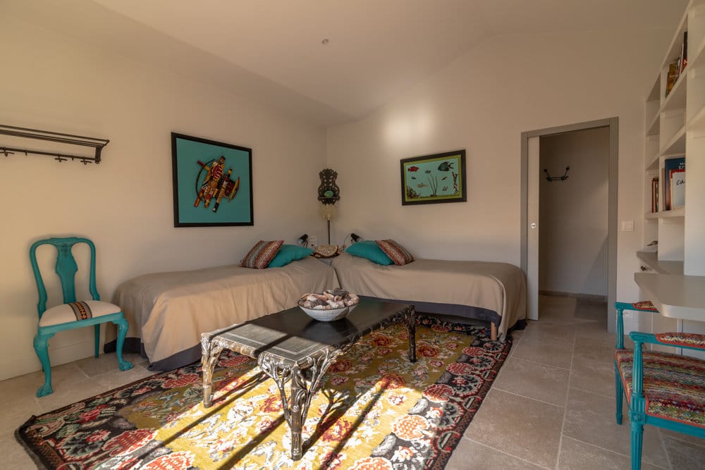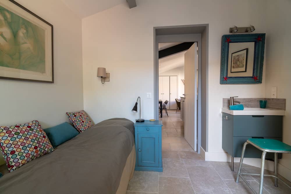 - Separate bedroom with two single beds (2 x 90 x 200 cm), sitting area, en-suite shower room and WC