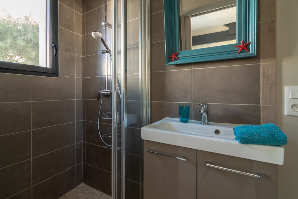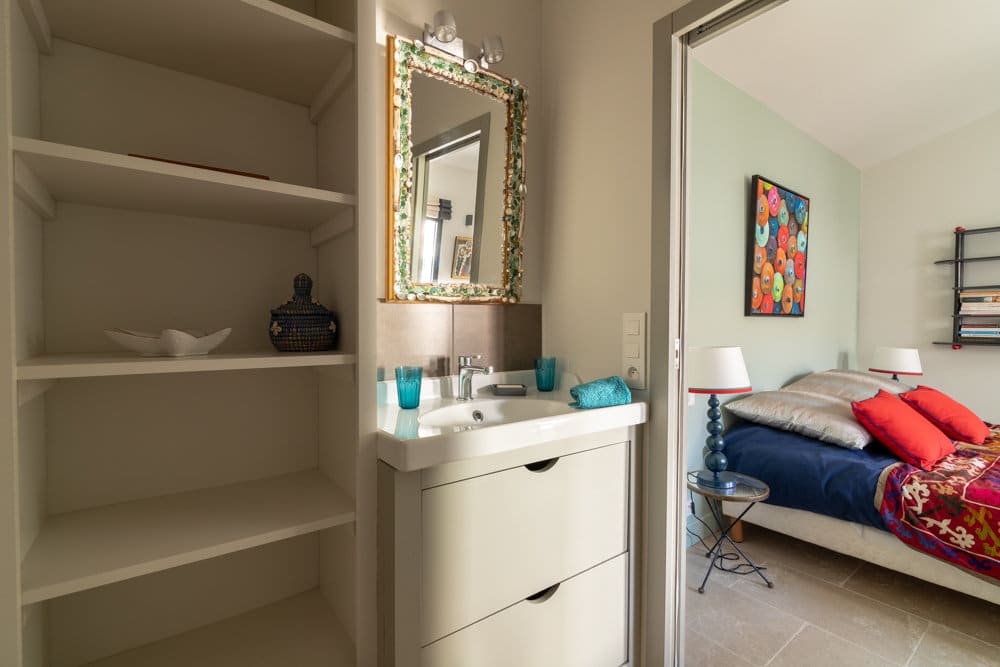 - Double bedroom (bed 160 x 200 cm) with en-suite shower room (walk-in shower) and WC