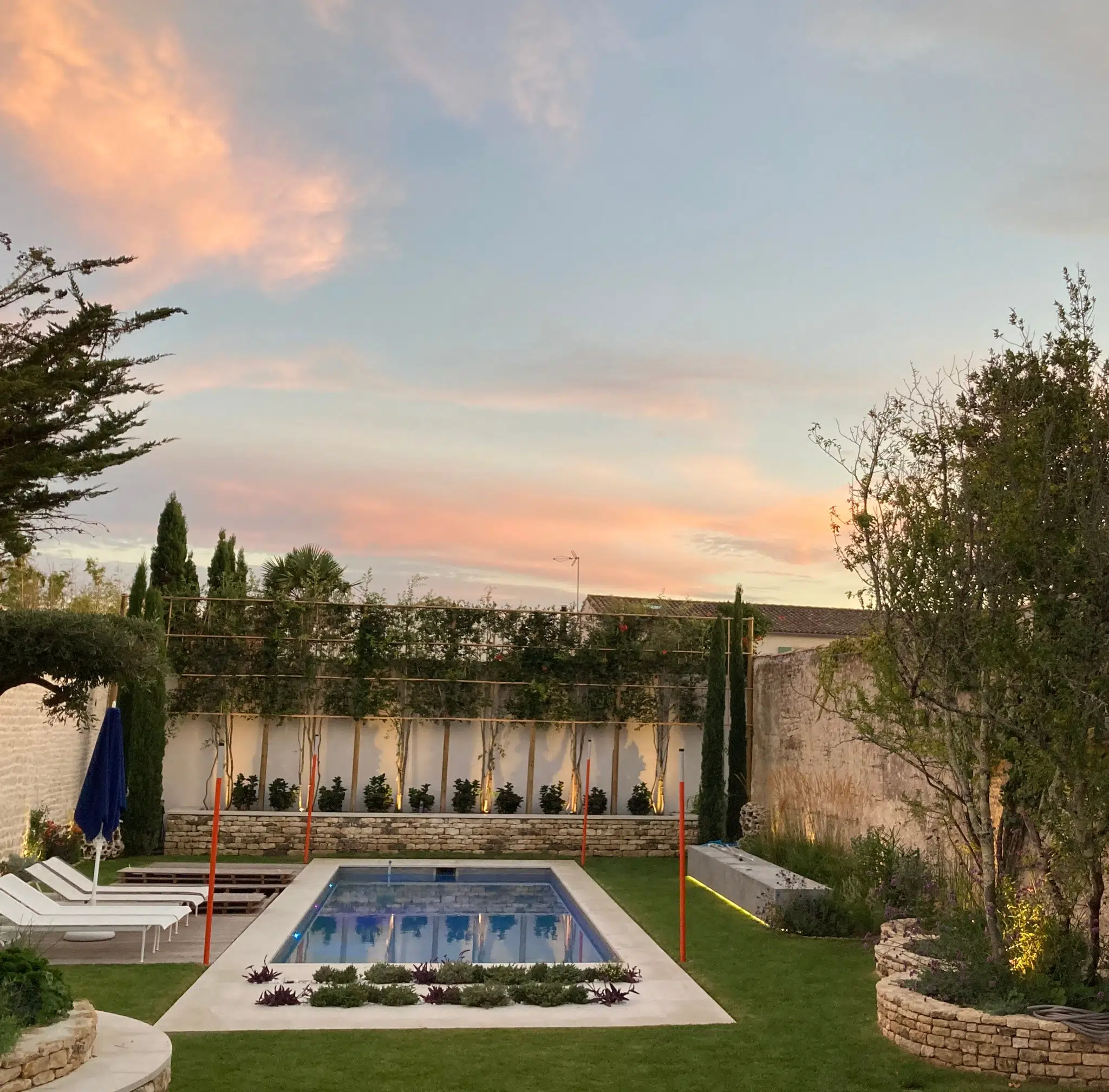 Cette maison d’architecte est exceptionnellement située au cœur de La Flotte sur le front de mer avec une vue directe sur l’océan, rare sur l’Ile de Ré.